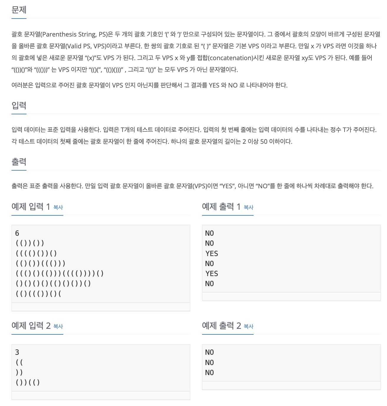 이 문제는 괄호 문자열이 올바른지 판단하는 문제인데요,